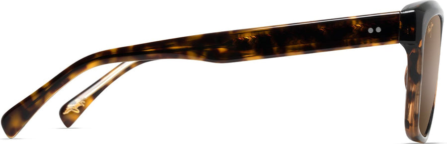 S-Turns is a small beachfront park in West Maui, named after an old meandering highway nearby. Connecting to its namesake in more ways than one, S-Turns features a hidden saddle-style bridge under a beveled acetate frame front, coated with a gloss finish to reflect light in a subtle undulation reminiscent of calming ocean waves. The connections to water are further illustrated with the Deep Ocean Swell kapa pattern, appearing on the temple core and visible through crystal interiors. This rectangular silhouette, with understated yet captivating details, is paired with patented PolarizedPlus2® lens technology, perfect for daily protection and vibrant views free from glare.